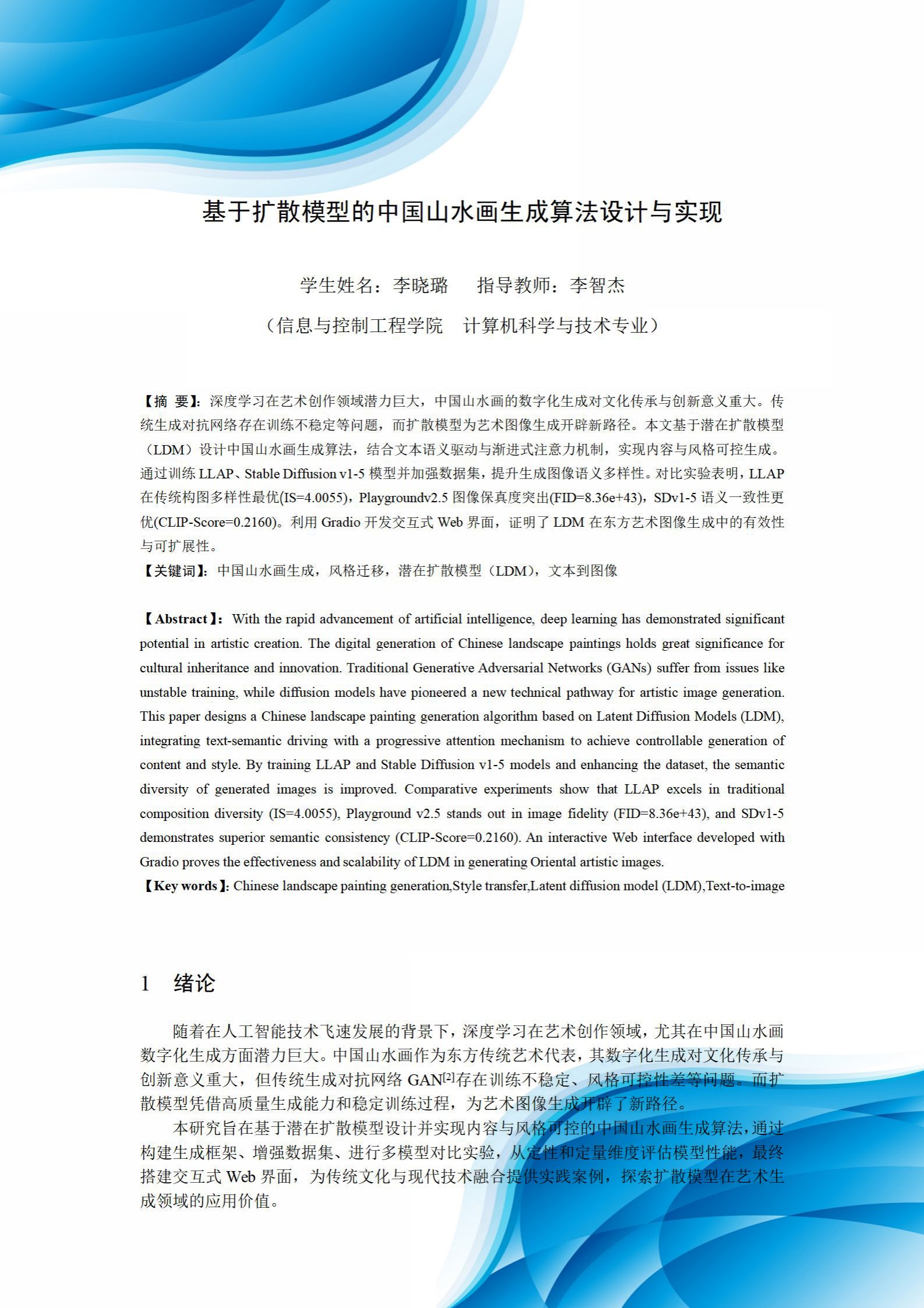 基于扩散模型的中国山水画生成算法设计与…