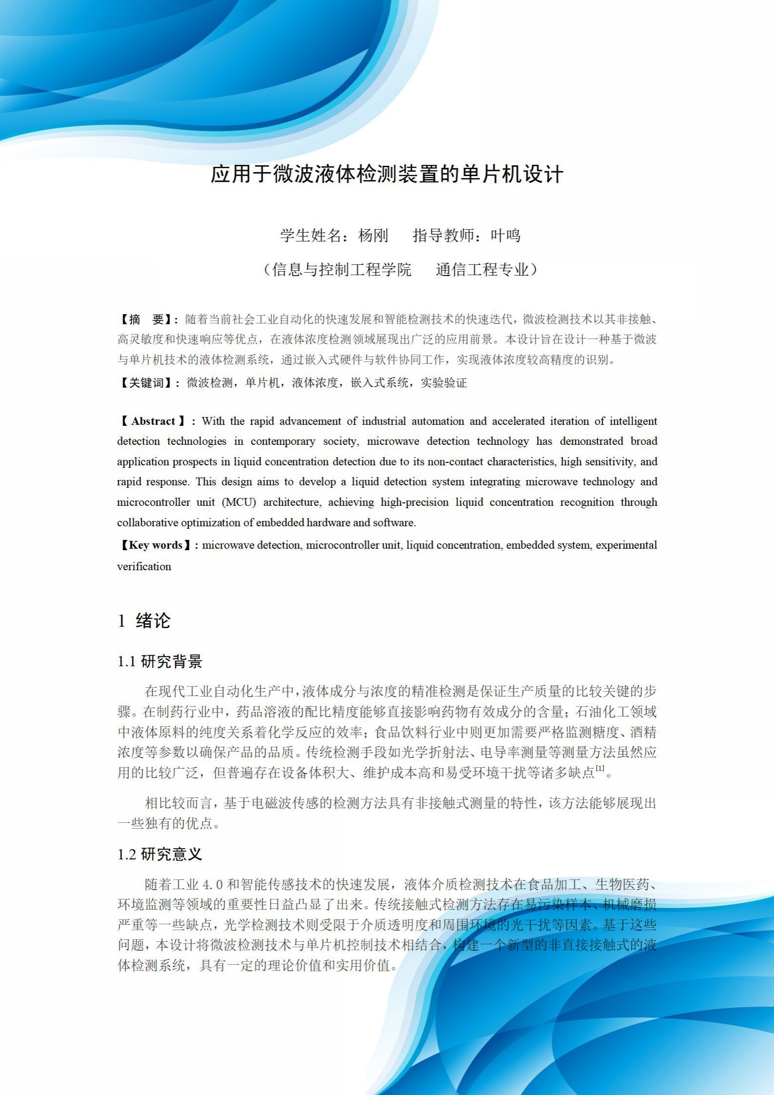 应用于微波液体检测装置的单片机设计