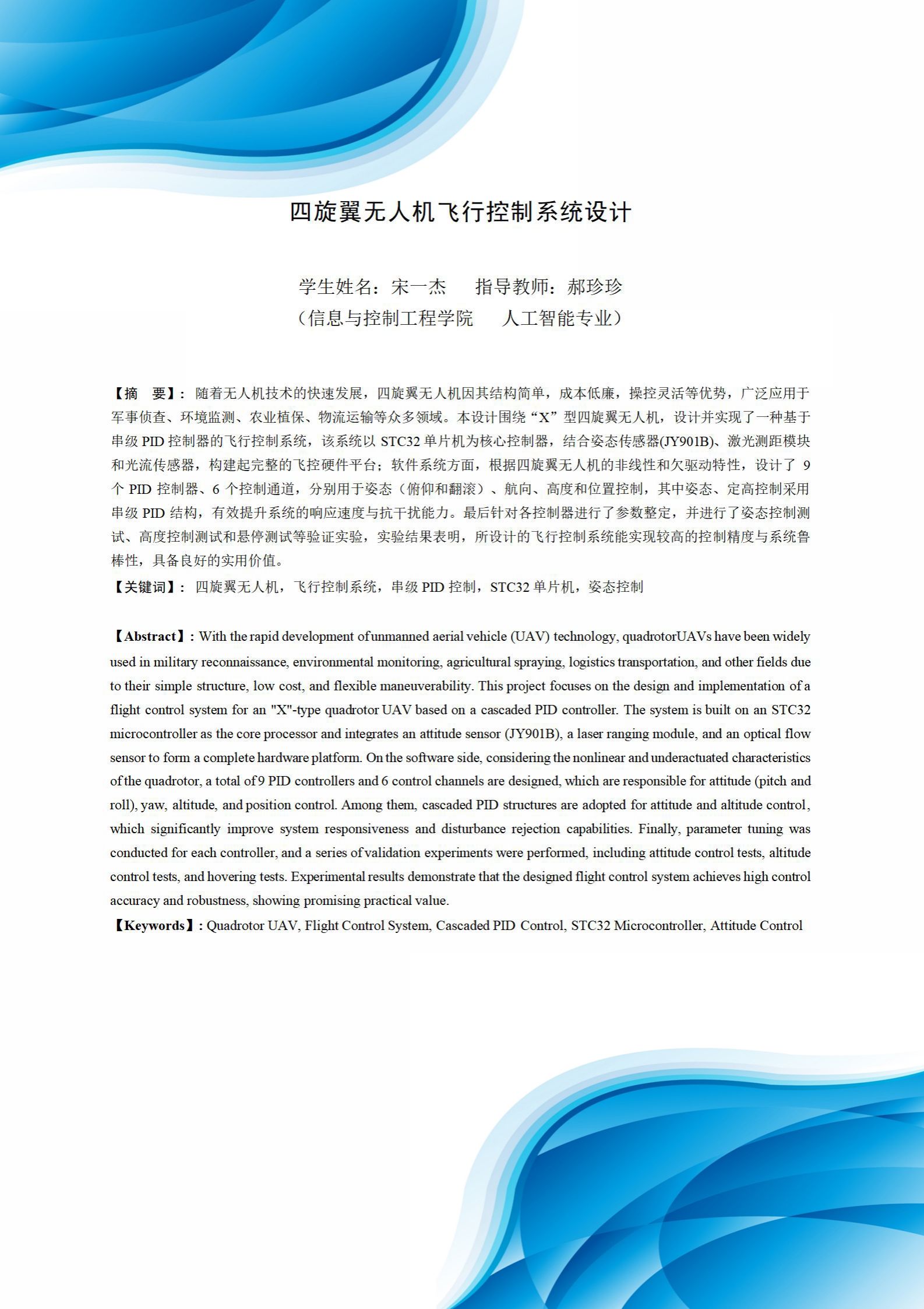 四旋翼无人机飞行控制系统设计