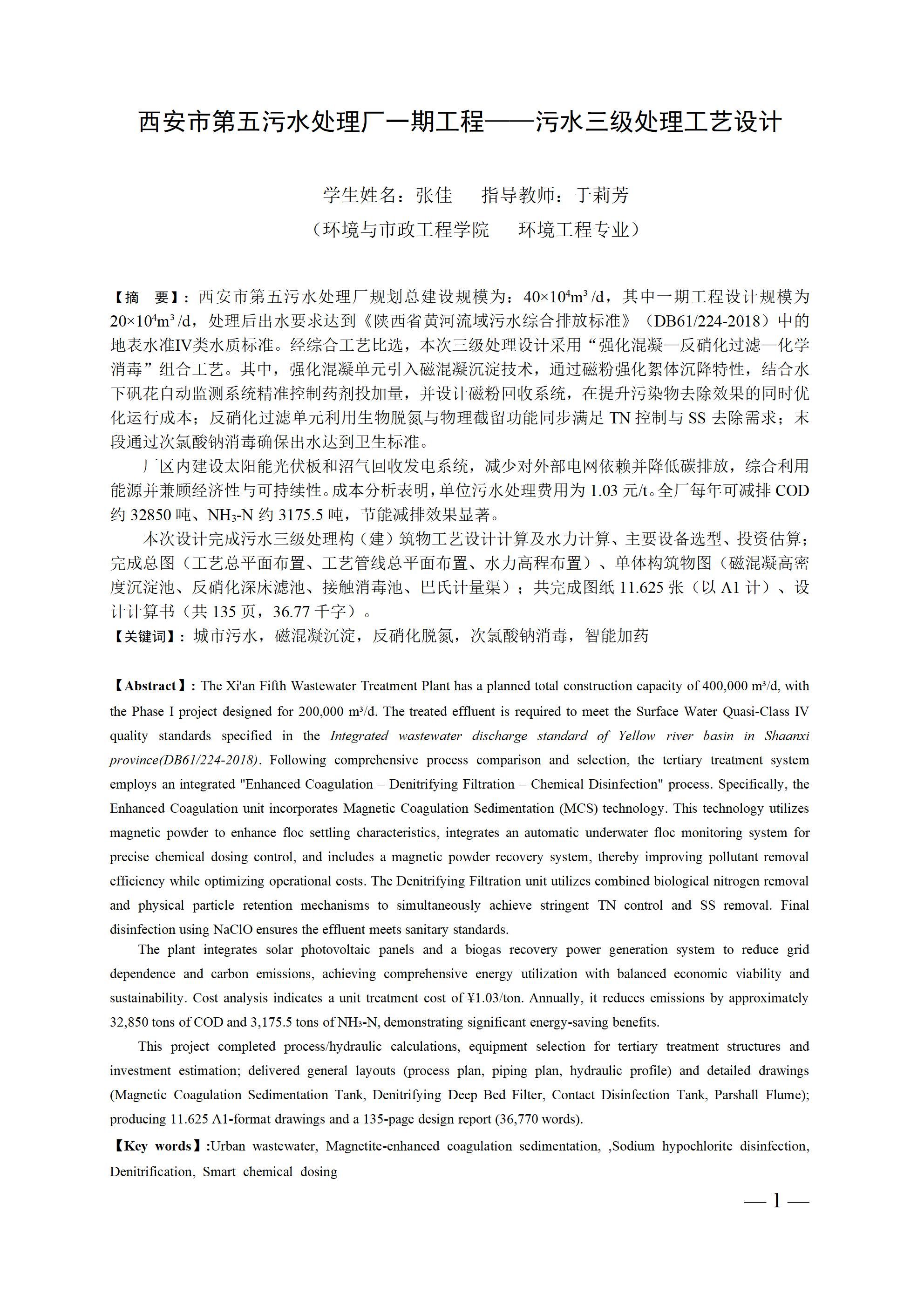 西安市第五污水处理厂一期工程——污水三级处理工艺设计