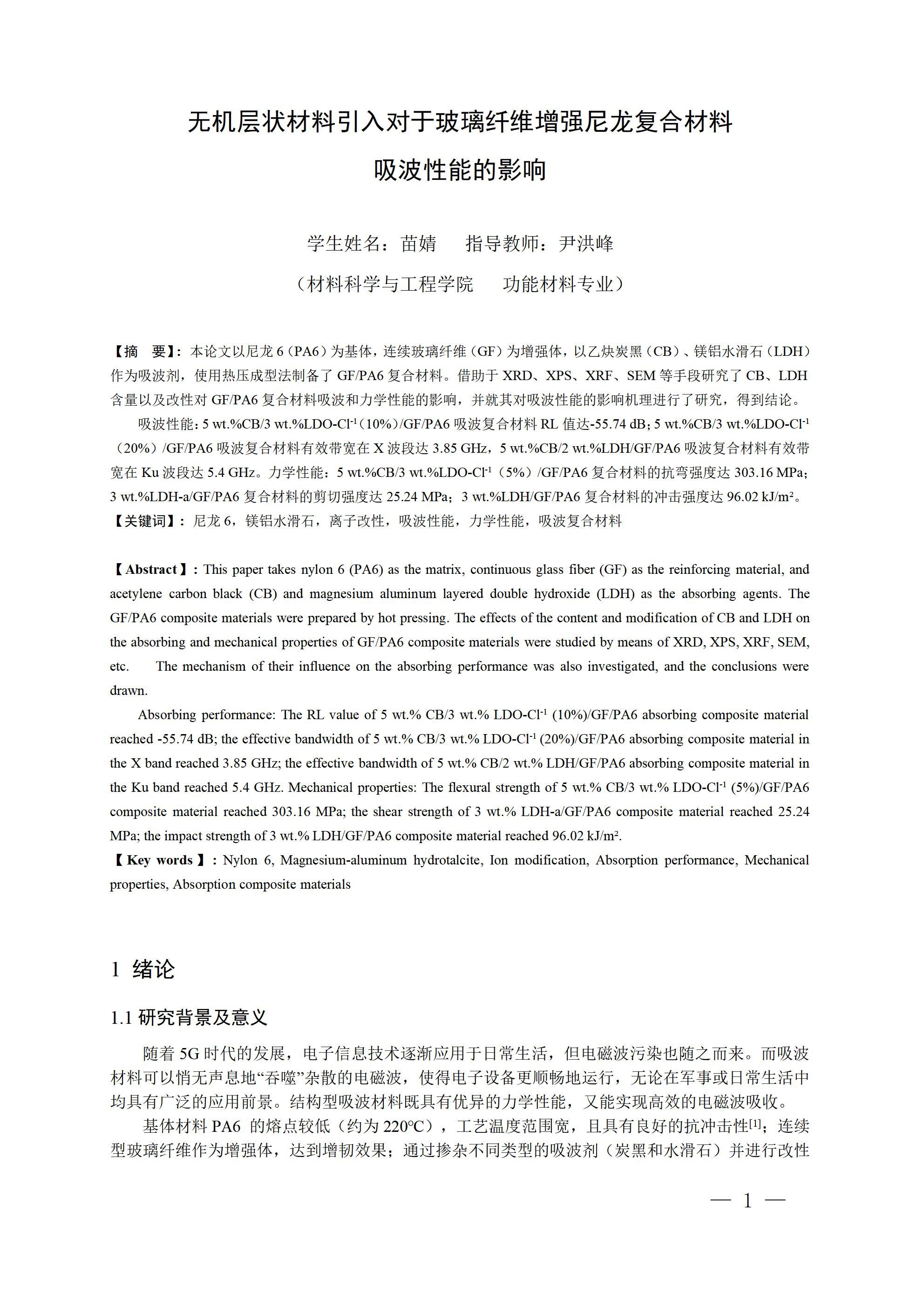 无机层状材料引入对于玻璃纤维增强尼龙复合材料 吸波性能的影响