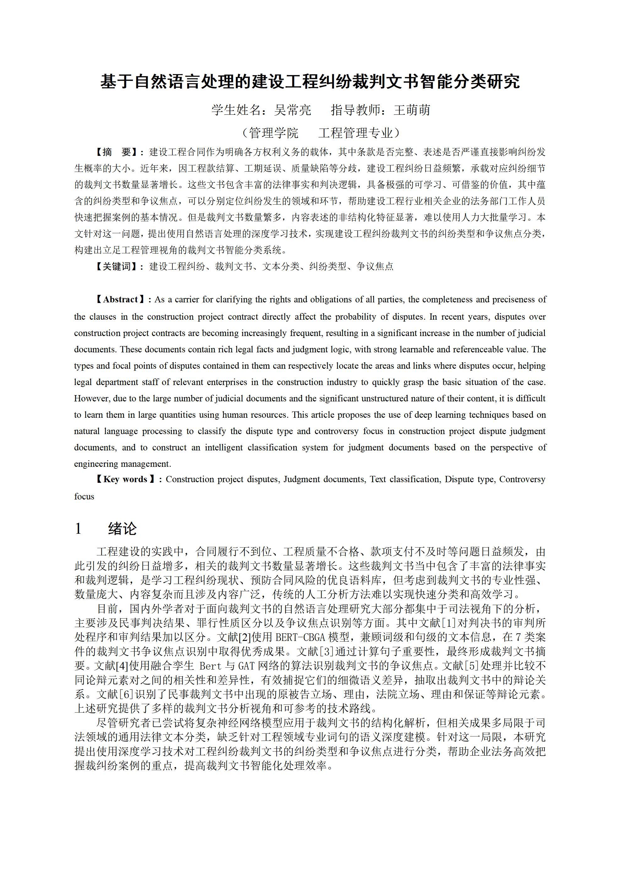 基于自然语言处理的建设工程纠纷裁判文书智能分类研究