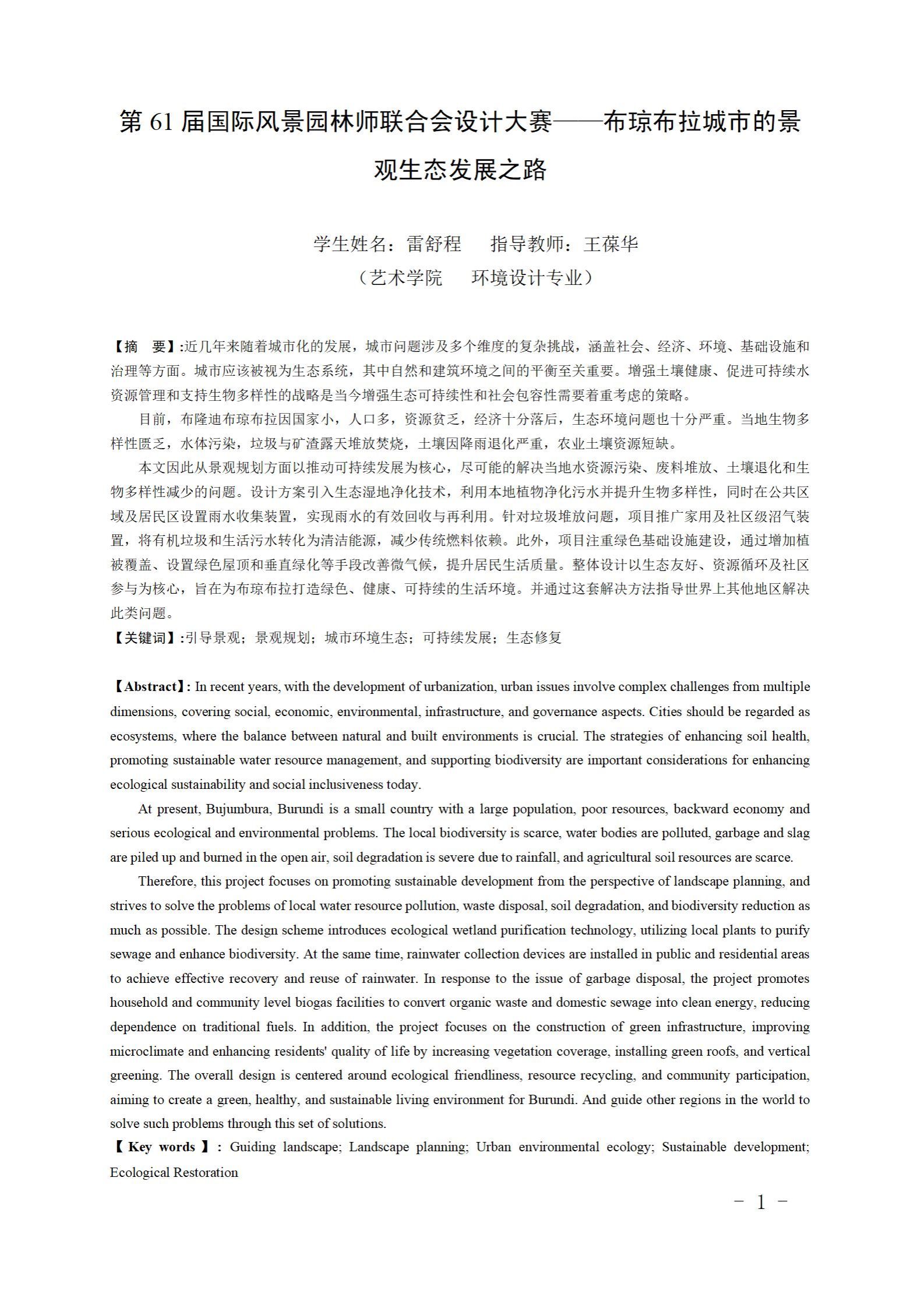 第61届国际风景园林师联合会设计大赛——布琼布拉城市的景观生态发展之路